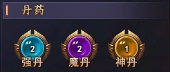 幻武升至4阶时,开启丹药玩法,玩家可使用三种丹药增加幻武固定值或百分比属性,随着幻武阶数的提升,玩家可使用的丹药数量也会增加。